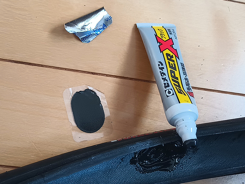 以前、とあるロードバイク系の個人ブログで「タイヤの穴補修用に、『セメダイン スーバーX ブラック』というボンドが良い」と書かれているのを見て、そのボンドを購入したことがある。